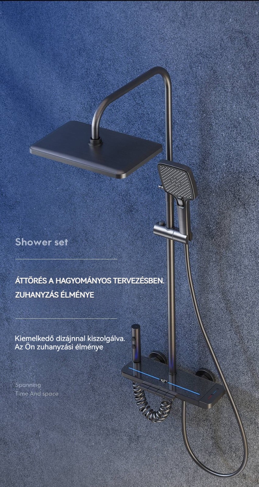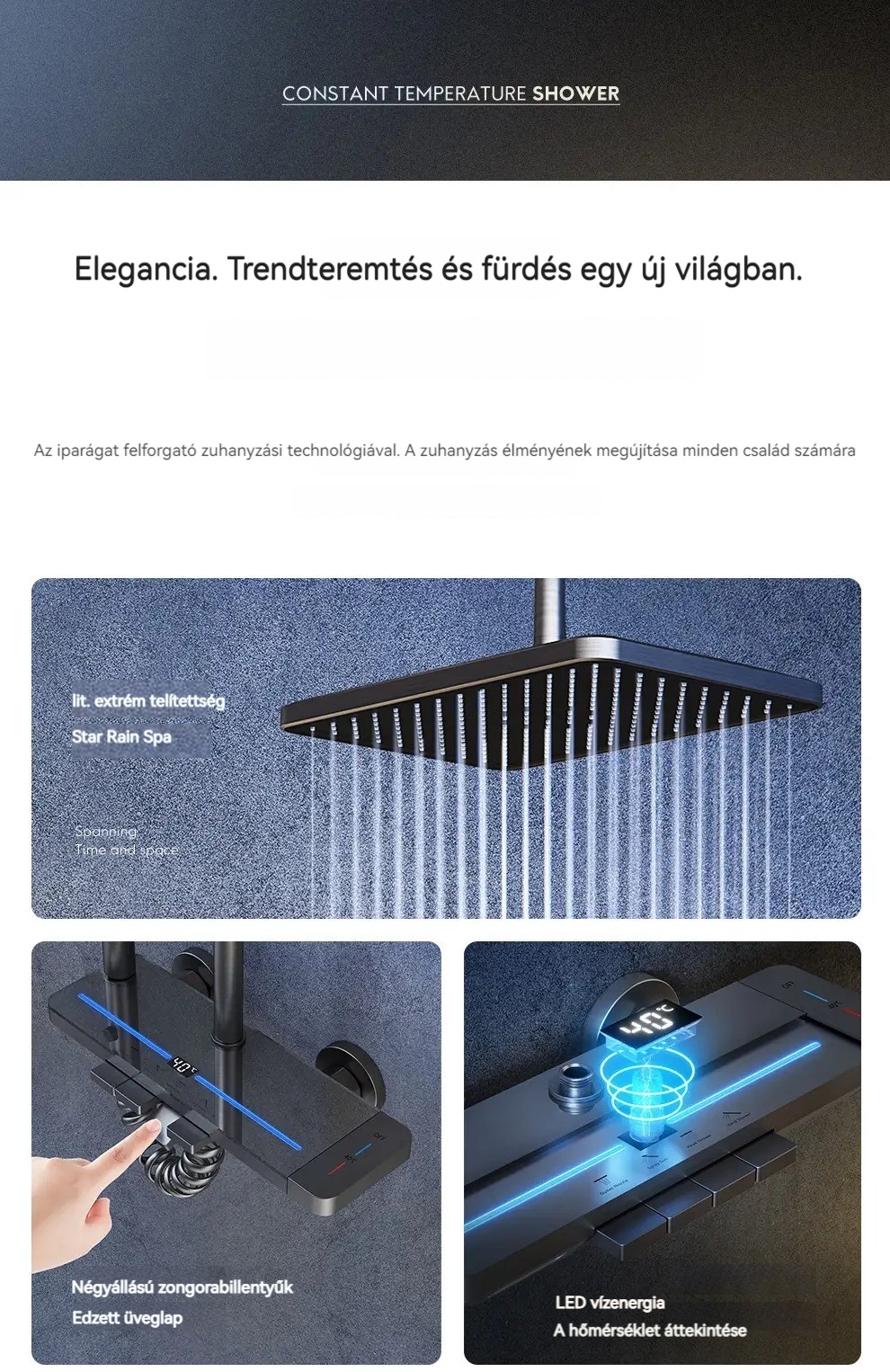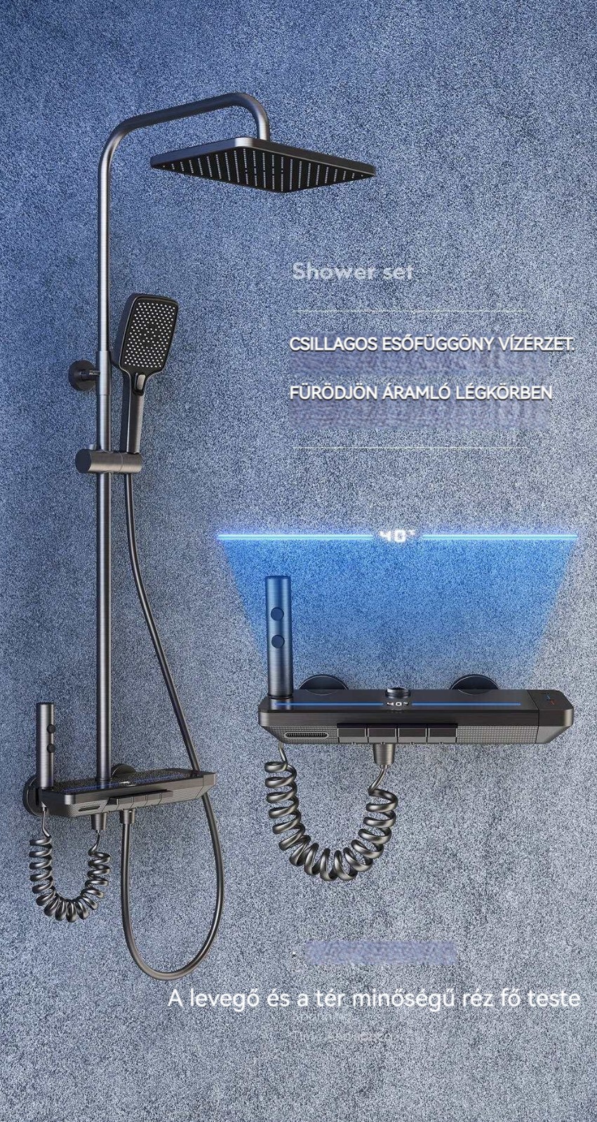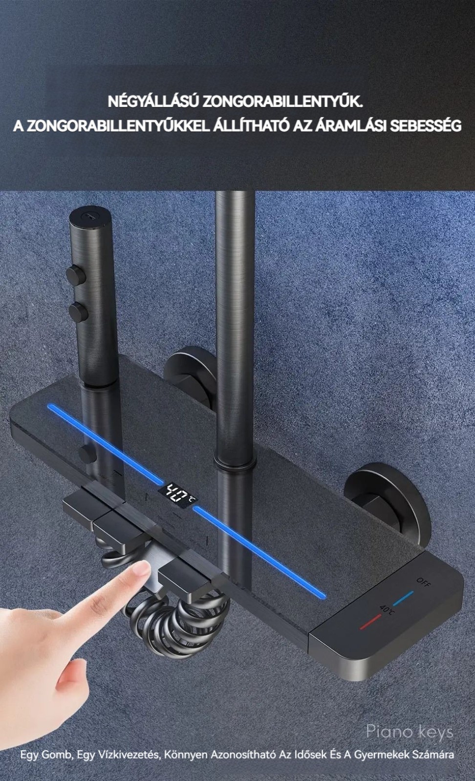 Zuhanyszett, digitális kijelzős intelligens termosztát, hidroelektromos teljesítmény, zongora gomb, teljes réz test, négysebességes gombos üzemmódváltás!