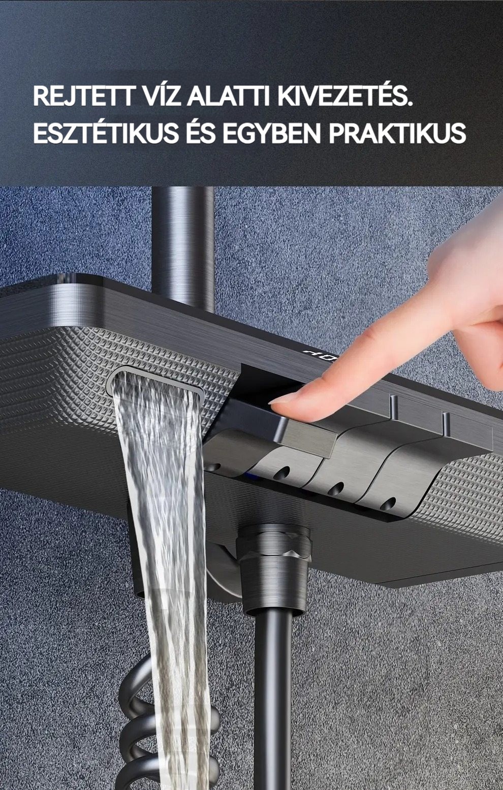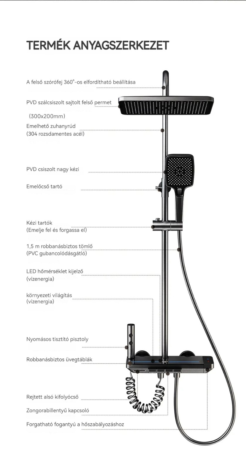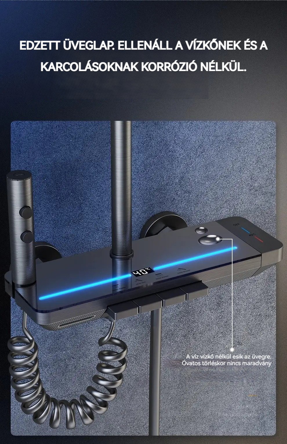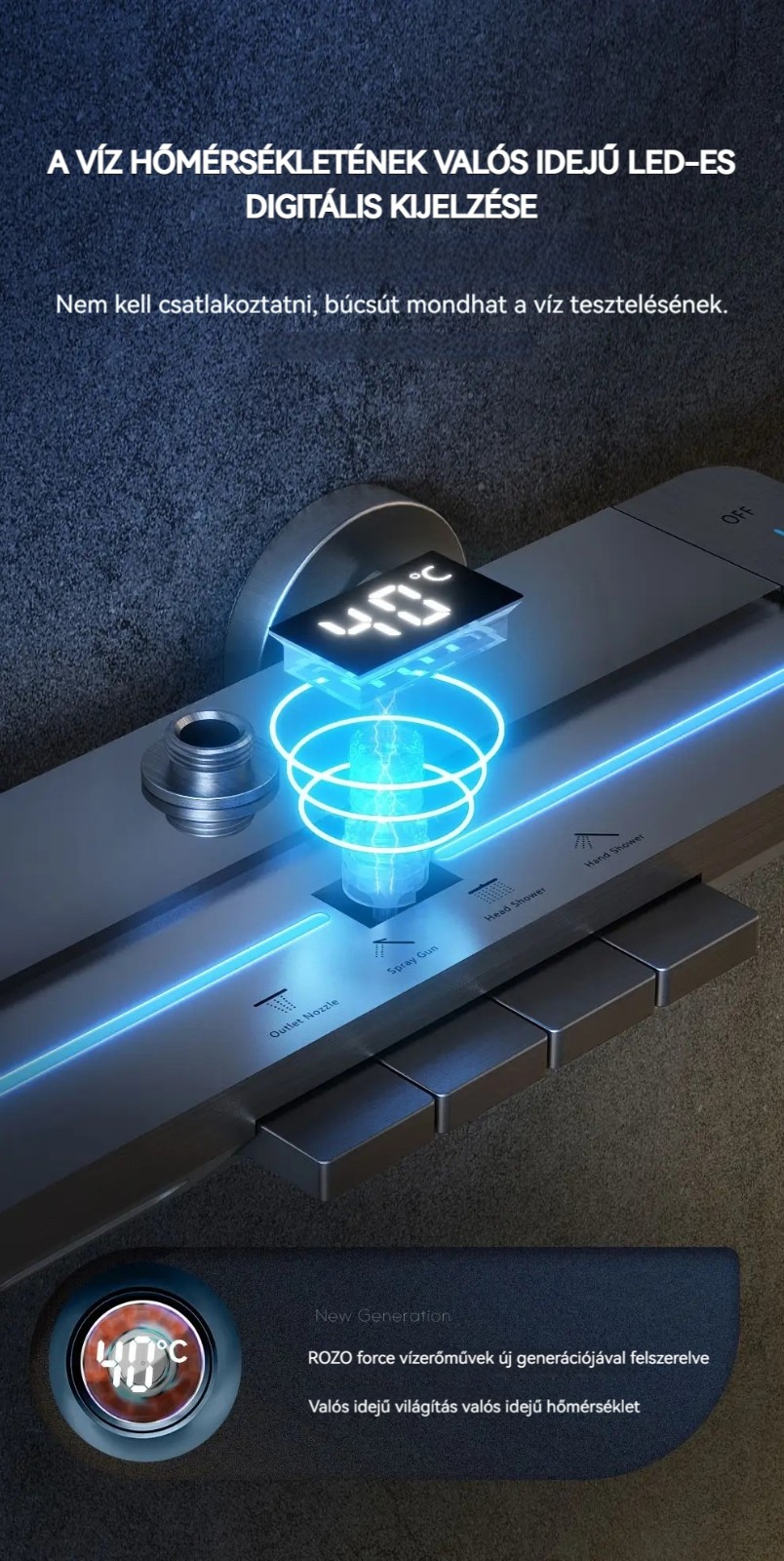 Zuhanyszett, digitális kijelzős intelligens termosztát, hidroelektromos teljesítmény, zongora gomb, teljes réz test, négysebességes gombos üzemmódváltás!