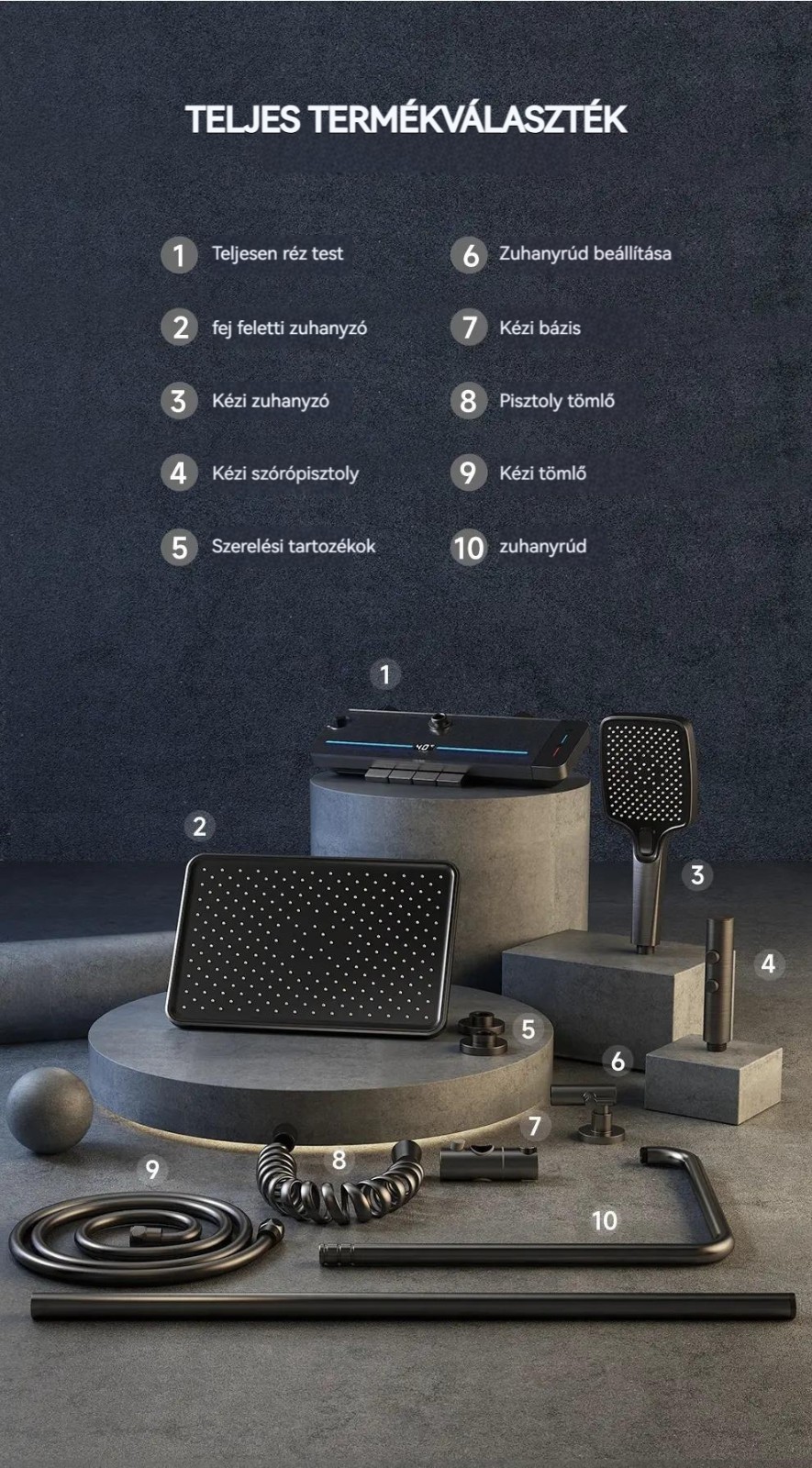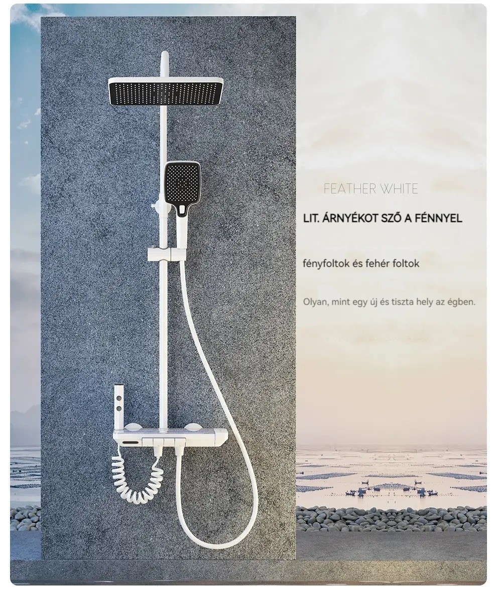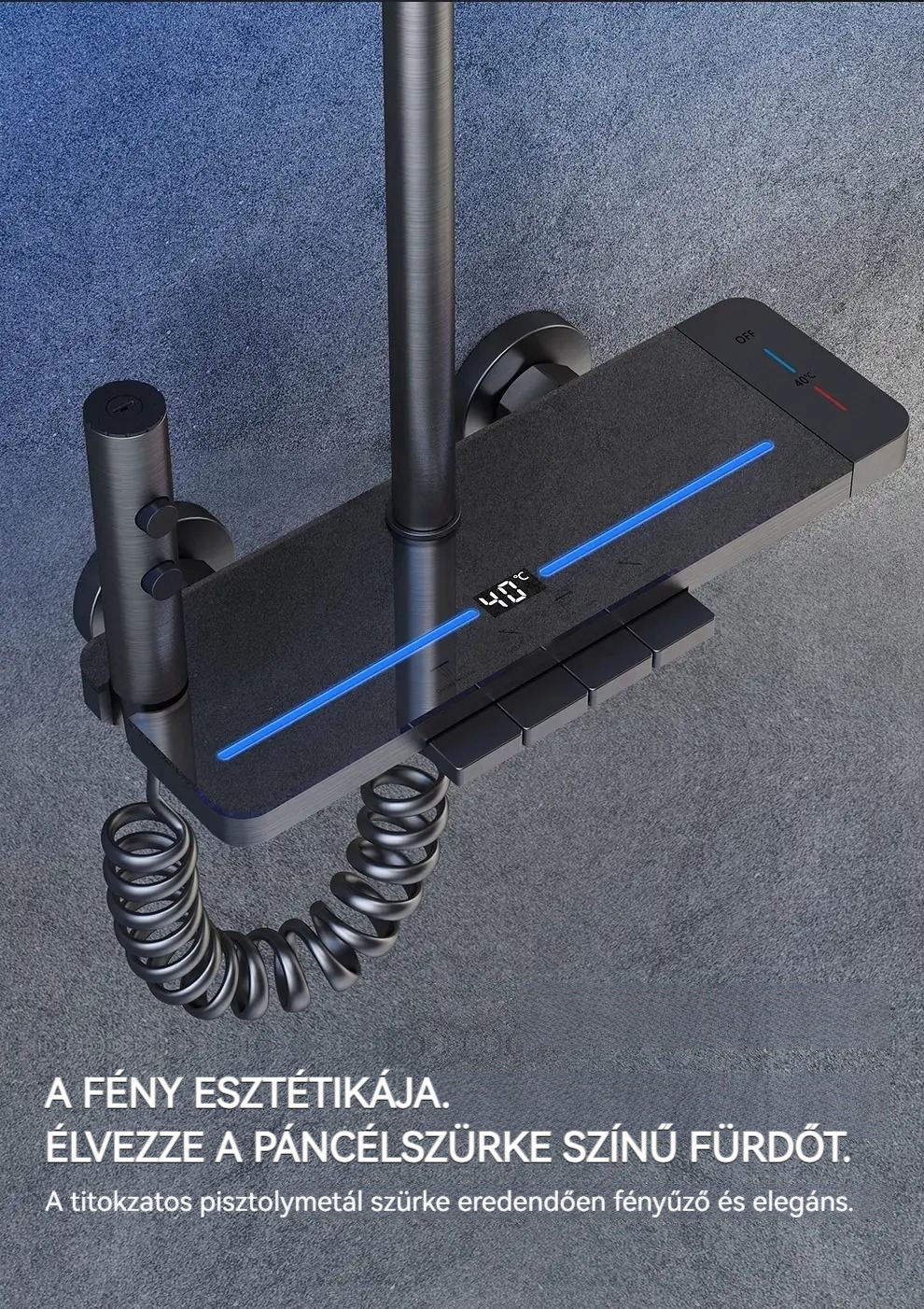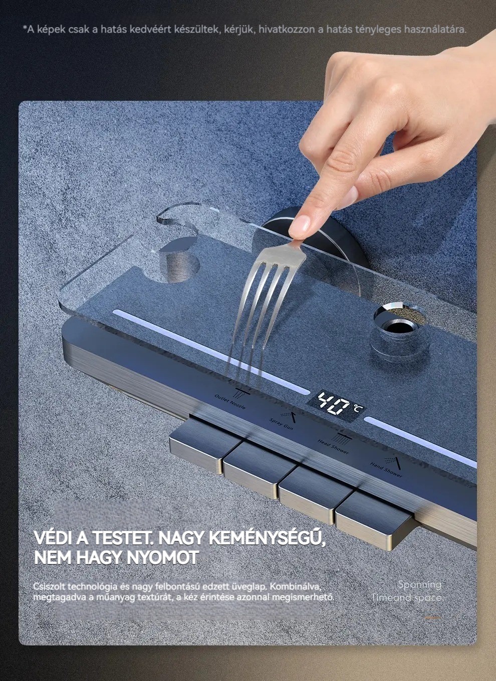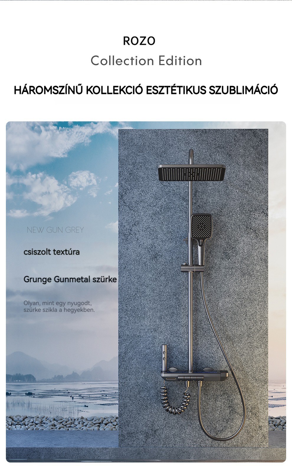 Zuhanyszett, digitális kijelzős intelligens termosztát, hidroelektromos teljesítmény, zongora gomb, teljes réz test, négysebességes gombos üzemmódváltás!