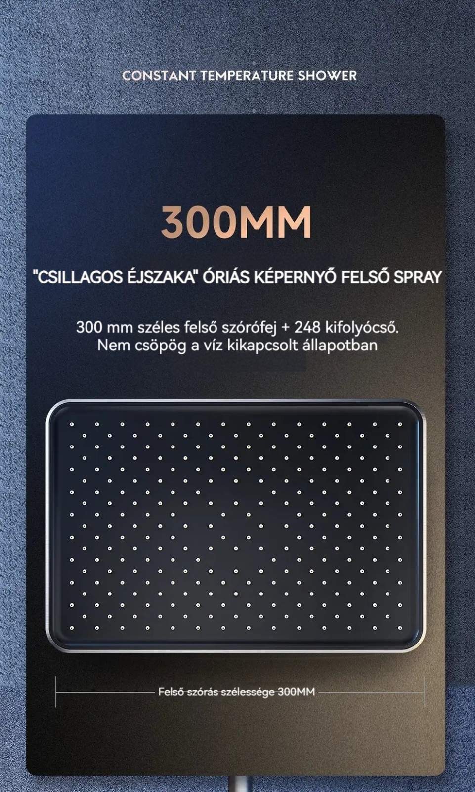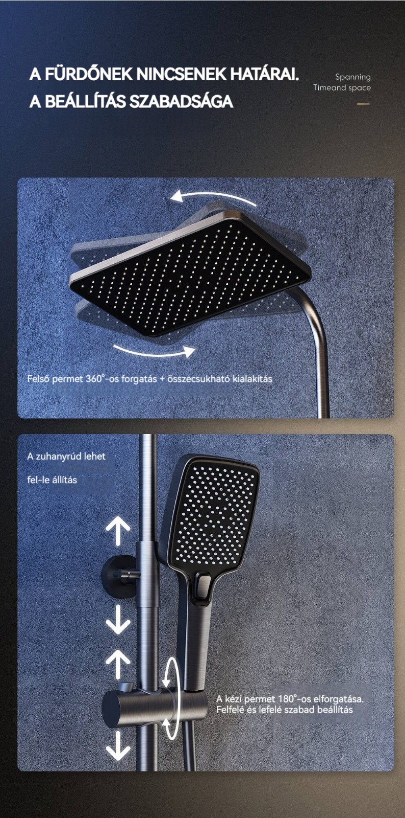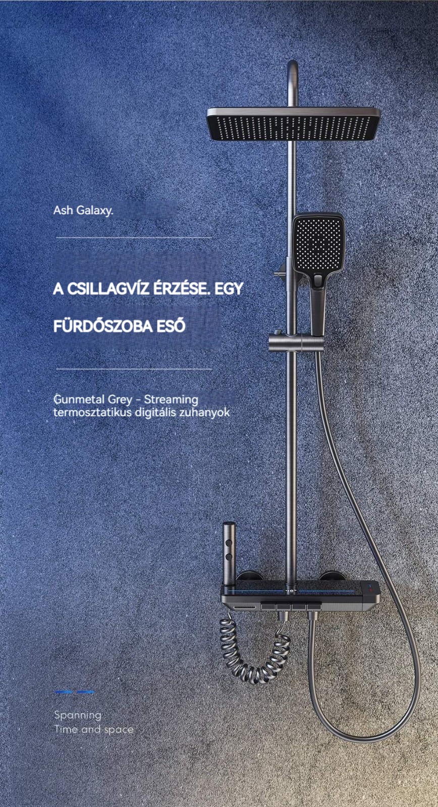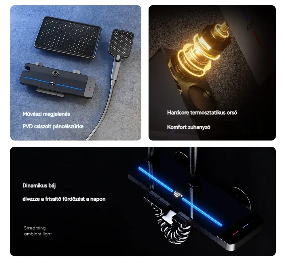 Zuhanyszett, digitális kijelzős intelligens termosztát, hidroelektromos teljesítmény, zongora gomb, teljes réz test, négysebességes gombos üzemmódváltás!