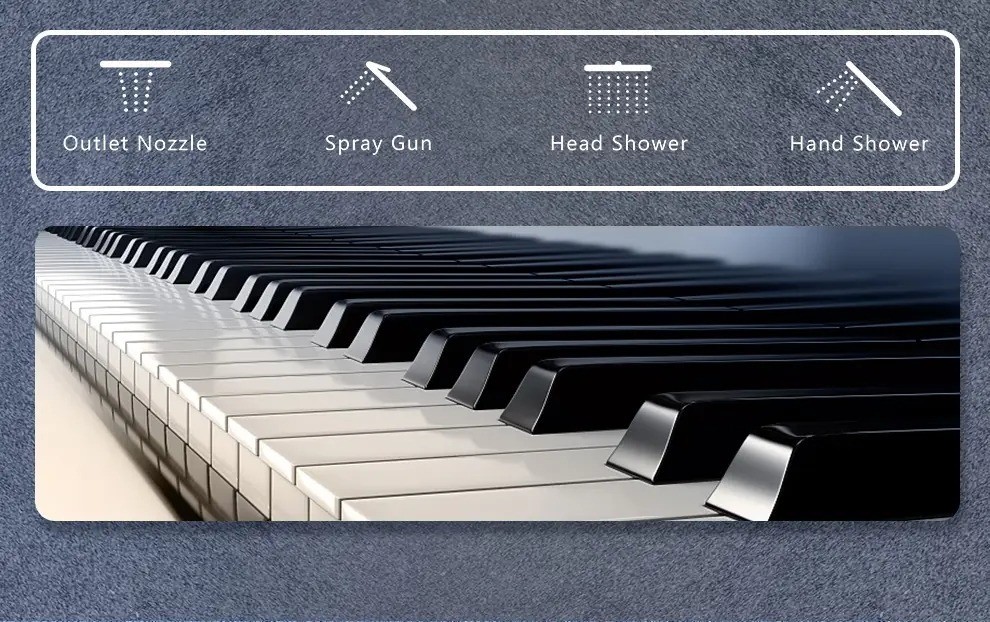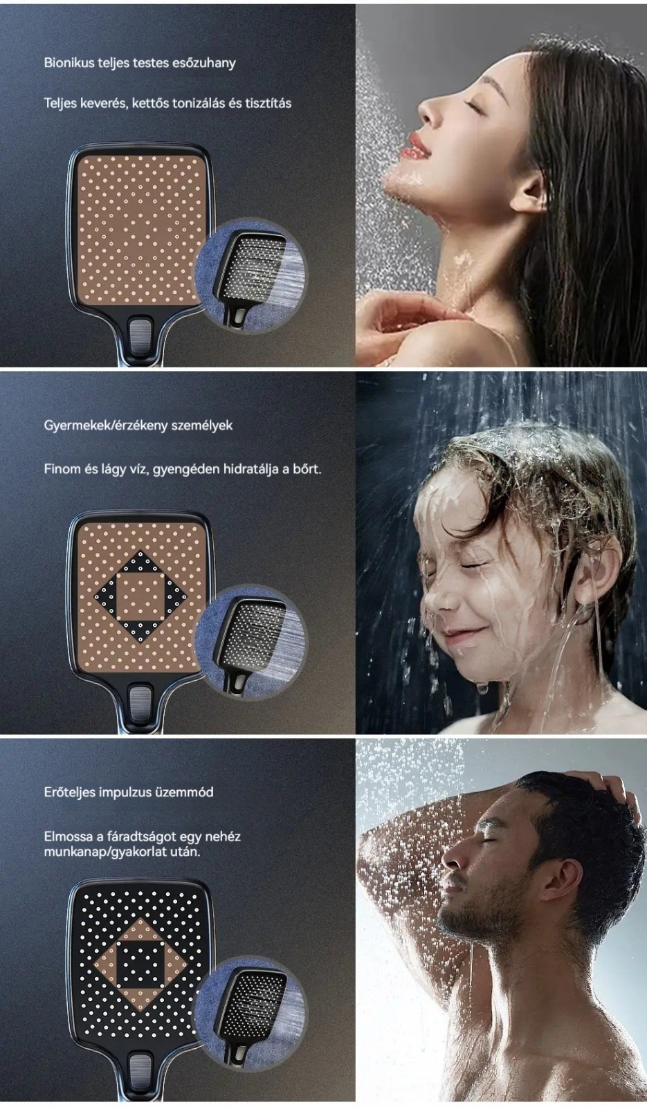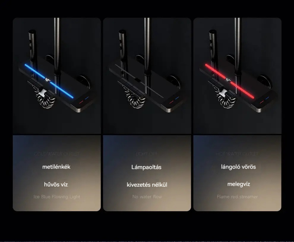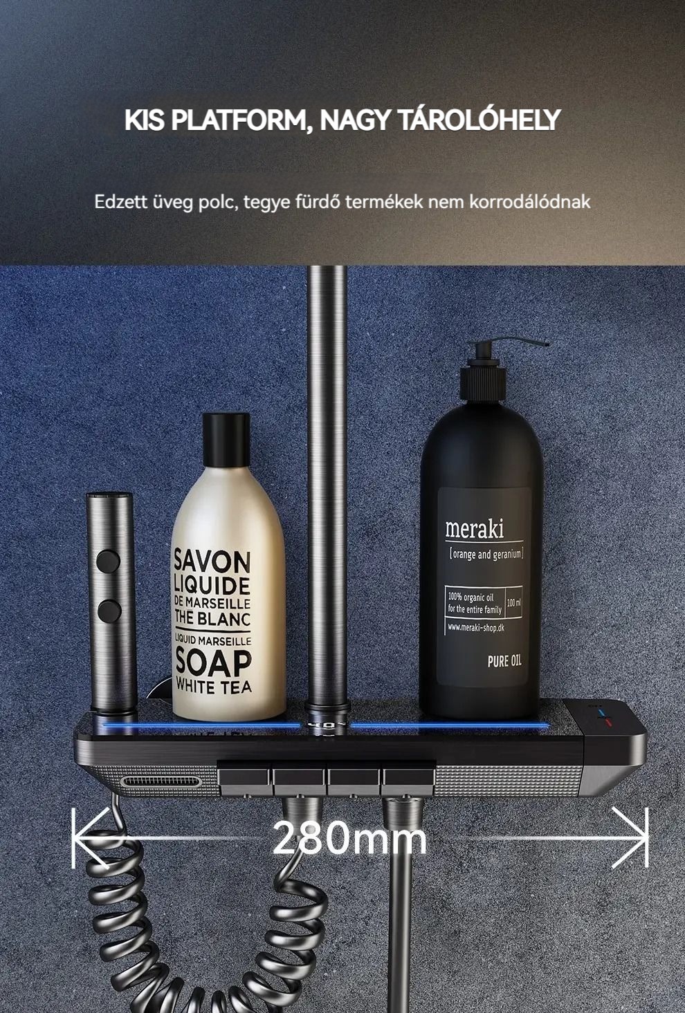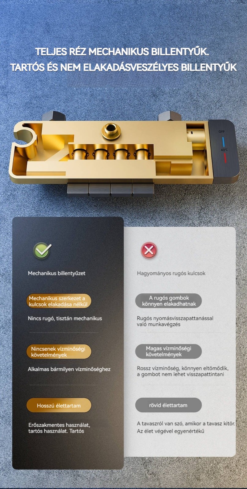 Zuhanyszett, digitális kijelzős intelligens termosztát, hidroelektromos teljesítmény, zongora gomb, teljes réz test, négysebességes gombos üzemmódváltás!